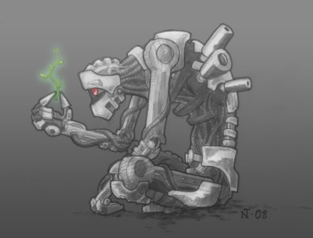 XR-378 trundled forward as a hatch slid open. The small little green shoot in its claw moved slightly in the breeze before XR-378 dropped it into the chute. A brief lick of flame rose up from beneath as the object was destroyed.