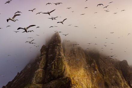 Every now and then, I’d cast a glance over my shoulder, up at Boreray. The island, gloomy and wild, towered up out of the mist. Cliffs rose up in uneven teeth that bit at the dim sky, and birds winged constantly around their peaks, shrieking with harsh, hoarse cries.
